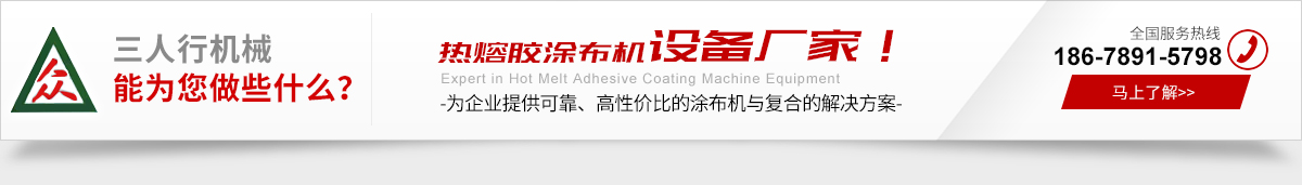 青島三人行機械有限公司是一家生產(chǎn)熱熔膠涂布機、不干膠涂布機、熱熔膠膜涂布機、膠帶涂布機、熱熔膠復(fù)合機。我們團(tuán)隊擁有十余年熱熔膠涂布與復(fù)合的工藝經(jīng)驗,無論是低粘度的熱熔壓敏膠(HM-PSA),還是高粘度的熱塑性材料(EVA、PU、PA、EEA等),我們能為您提供涂布與復(fù)合的合理解決方案。